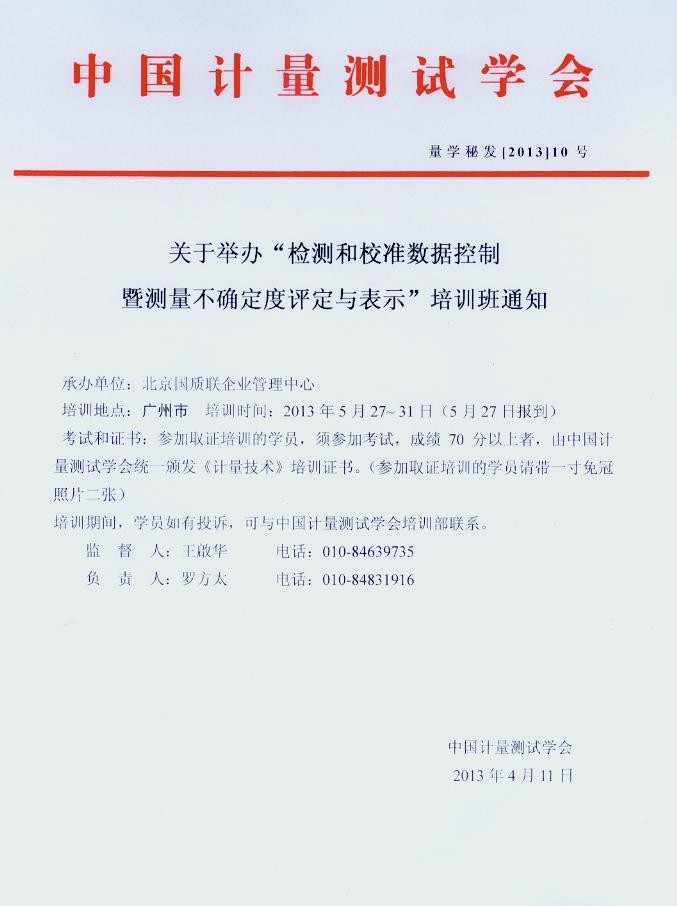 关于举办“检测和校准数据控制暨测量不确定度评定与表示培训班”的通知