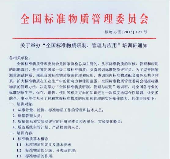 关于举办“全国标准物质研制、管理与应用”培训班的通知
