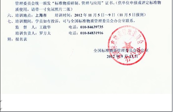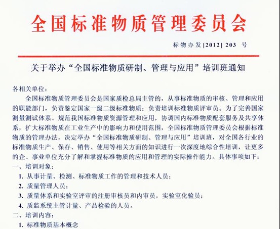 关于举办“全国标准物质研制、管理与应用培训班”的通知