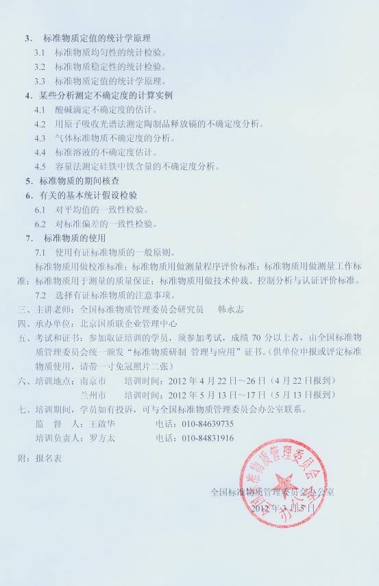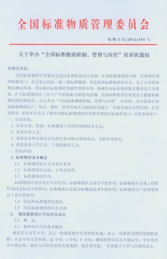 关于举办“全国标准物质研制、管理与应用培训班”的通知
