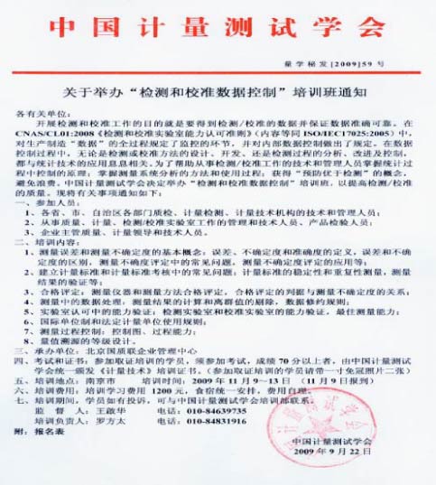 关于举办“检测和校准数据控制”培训班的通知