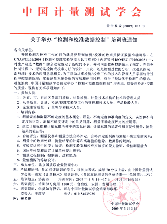 关于举办“检测和校准数据控制”培训班的通知