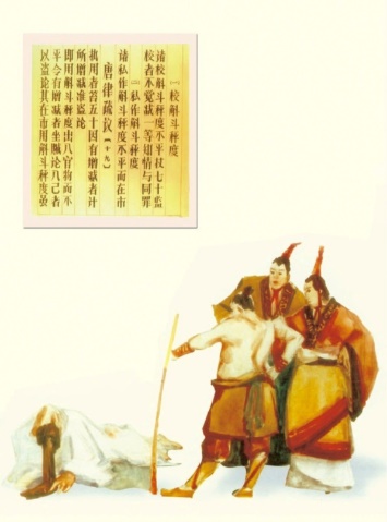 《唐律疏议》又称《永徽律疏》,是唐高宗永徽年间完成的一部极为重要的法典。《唐律疏议》明确规定使用不准确的度量衡,都处以笞、杖等刑罚。如《唐律疏议》第十篇《杂律门》,第一条:校斛斗秤度,诸校斛斗秤度不平,杖七十,监校者不觉,减一等,知情与同罪。第二条:私作斛斗秤度不平,而在市执用者,笞五十,因有增减者,对所增减准盗论。