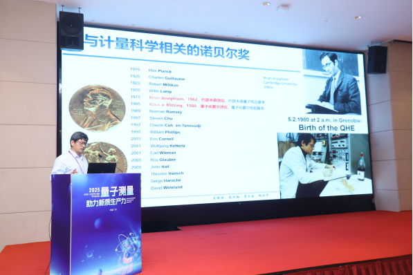 北京航天计量测试技术研究所前沿中心主任张铁犁研究员、中国计量科学研究院热工所副所长冯晓娟研究员、航空工业集团首席技术专家王宇研究员、中国计量科学研究院力学与声学所质量实验室主任李正坤研究员、中国电科院高级技术专家白静芬正高级工程师等多位专家,分别就飞秒光频梳技术及其在精密测量中的应用、新开尔文研究进展与展望、重力加速度量子测量技术进展、国际单位变革之千克量子化复现研究进展、量子精密测量技术在电网中的应用研究进展等题目作报告。从国际单位制千克量子化复现,到量子技术在电网领域的创新应用,一系列学术分享全面展现计量领域最新科研成果,为参会者带来一场前沿学术盛宴。
